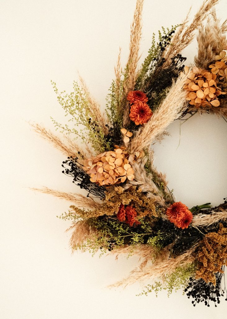 For starters, there are a variety of wreath bases to choose from: metal, wood, foam or even wicker, available in different sizes and thicknesses. The choice of base will depend on the style you wish to give to your creation: minimalist, rustic or more busy.