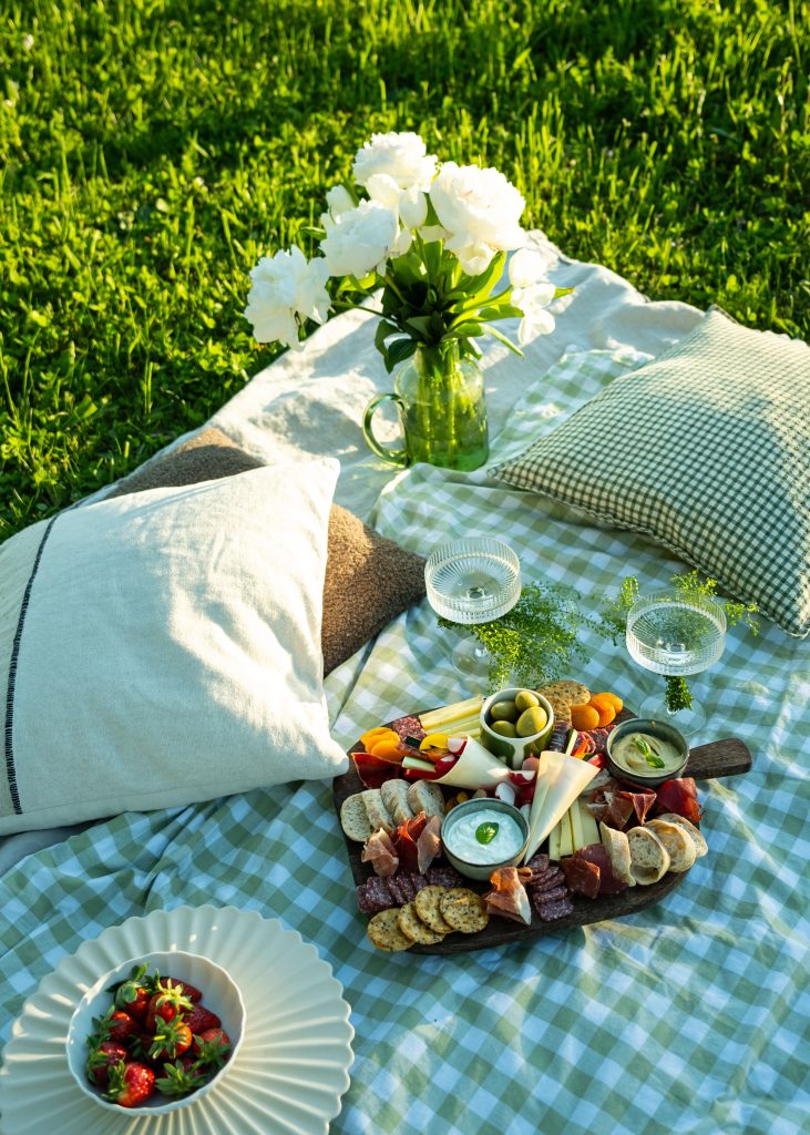 Sometimes it doesn't take much to create a beautiful moment. Soft light at the end of the day, a blanket on the grass, a fresh drink... and a board to share. That's the spirit I had in mind when I prepared this picnic with a taste of spring and lightness.