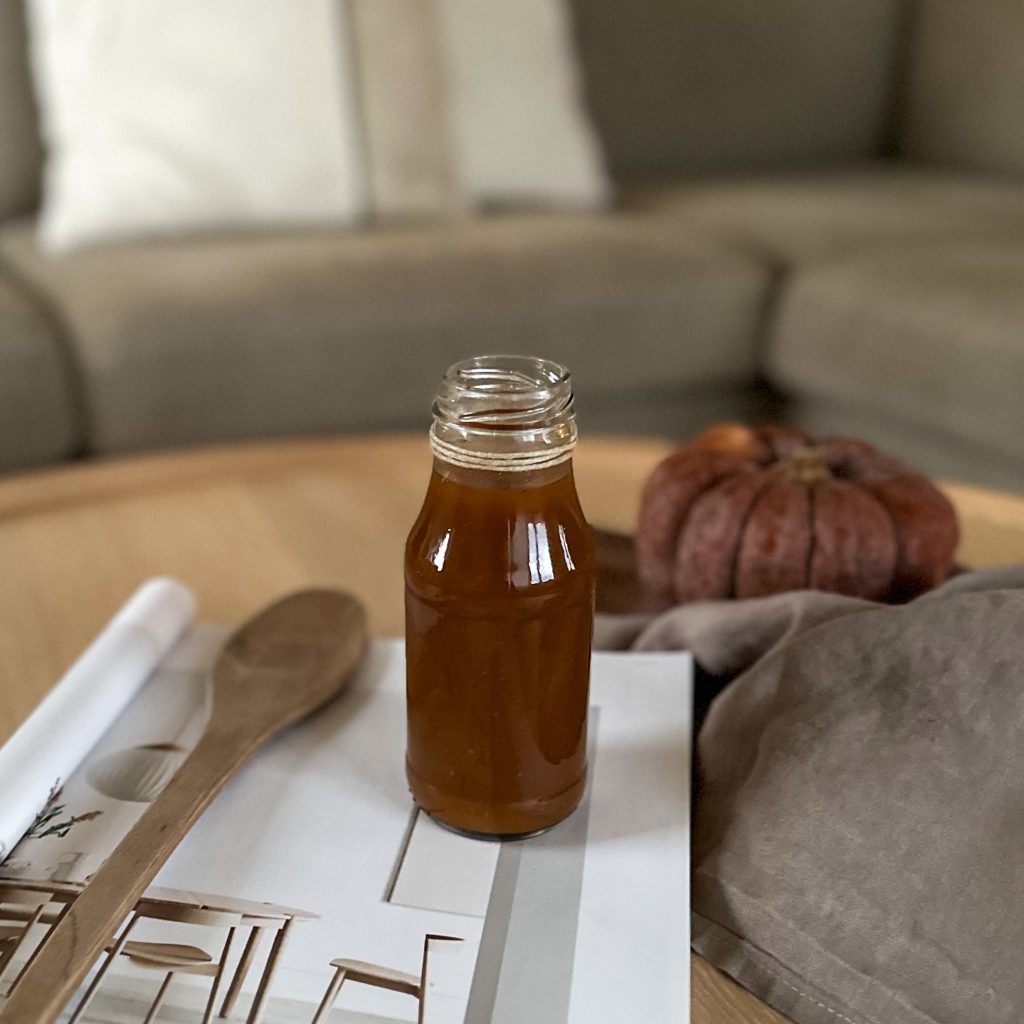 Si je devais choisir une seule chose qui m’évoque l’automne je choisirais sans aucun doute la courge. Avec sa saveur réconfortante, ses formes variées et ses couleurs particulières, elle incarne parfaitement la douceur qui caractérise cette période de l’année. J’ai pour habitude de la déguster en soupe et j’avais envie de tester une version un peu différente cette fois-ci. Ce sirop de citrouille délicieusement sucré et épicé est parfait pour aromatiser tout types de boissons chaudes ou froides, pour accompagner du porridge, des pancakes ou encore même de la glace. Bref, voici la recette idéale pour ajouter une note automnale à chacune de vos dégustations.